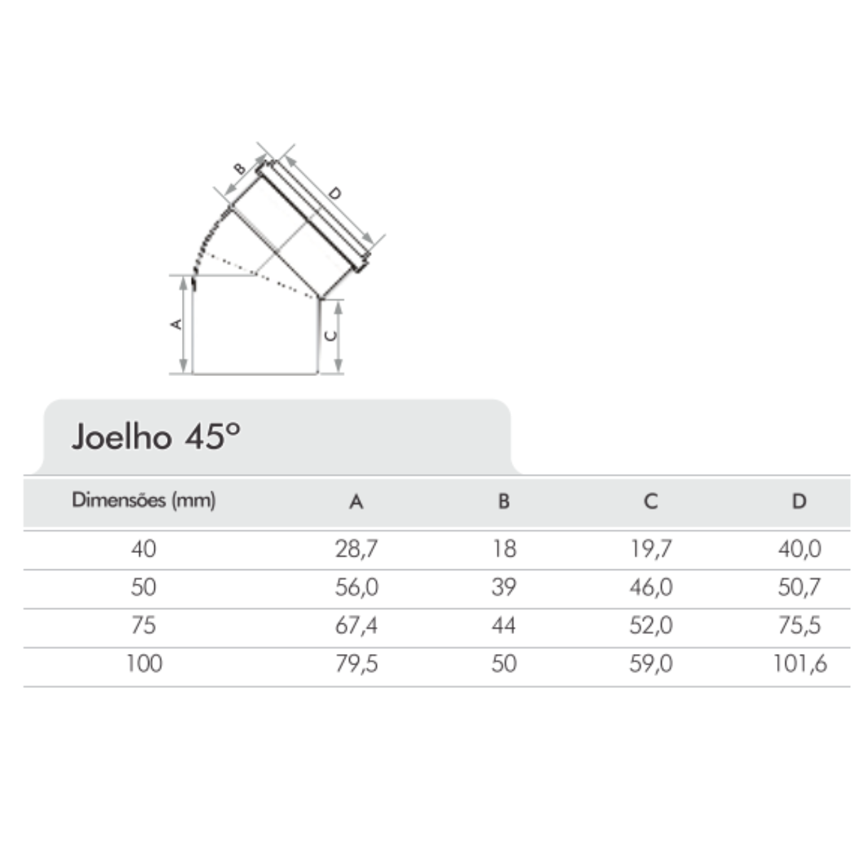 – Modelo: Esgoto 50mm, 45º.
